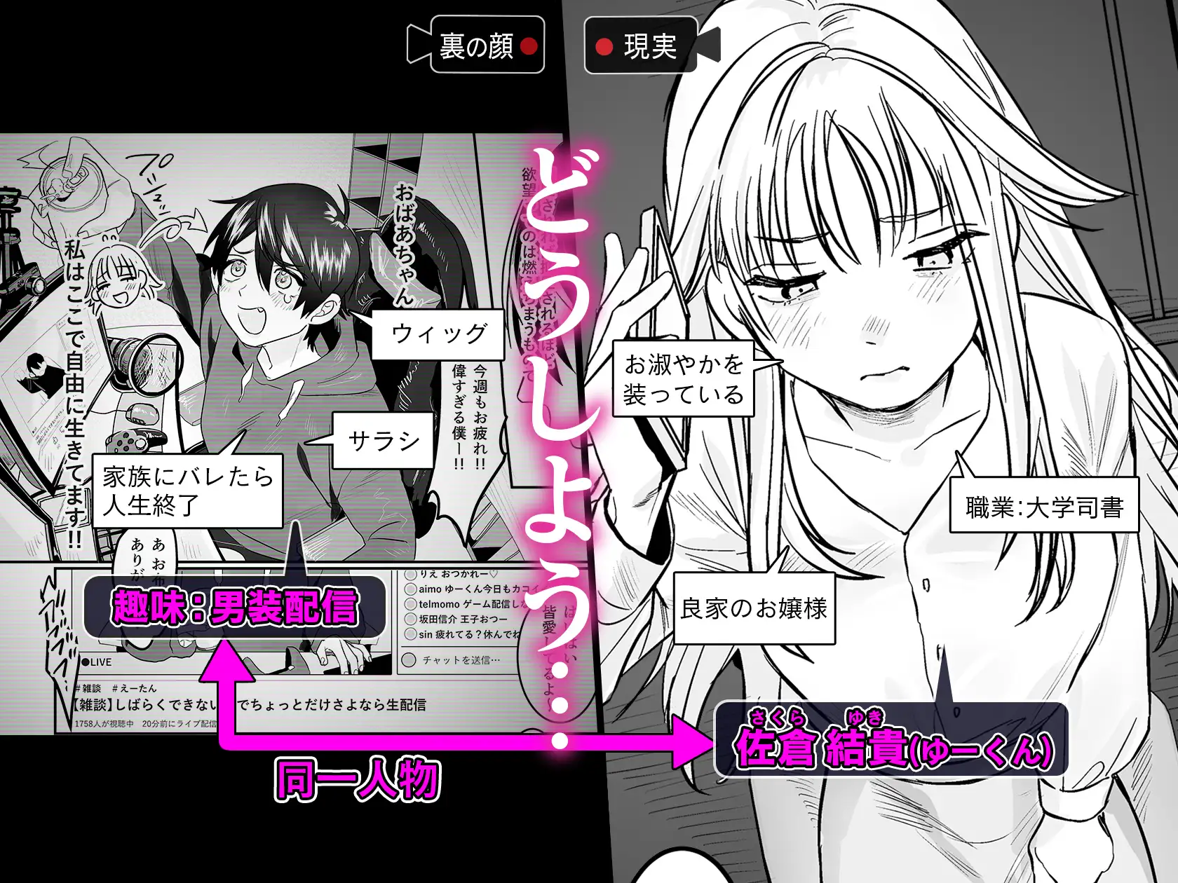 大学司書の結貴(ゆき)は普段はお淑やかな女の子(を装っているだけ)だが、男装ストリーマーとしてネット配信するという裏の姿を持っていた。